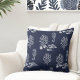 Een klassiek Tropical Beach House Zee met schelpen en koraal Sierkussen met een marineblauwe en witte achtergrond. Het ontwerp op dit kussen is gemaakt door Totally Coast designer, Jillee K. Klik hieronder gerust op "Bericht" als je vragen hebt. Jillee zou graag van je horen en weten wat je lief zou hebben. © Totaal Kust 2021