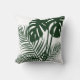 Voeg een stukje klasse toe aan je decor met deze prachtige tropische bladeren die een kussen met palmschijfjes en filodendronbladeren in donkergroen gooien op een witte achtergrond voor een modern uiterlijk. Beschikbaar in extra kleuren.