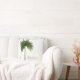 Elegante palmboom maakt deel uit van het bladerdak boven de naam op het kussen van de worp. Elegant Tropisch ontwerp. De palmboom heeft een eenvoudige achtergrond. De achterkant heeft het ontwerp van de palmboom.