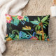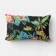 Deze kleurrijke tropische worp is een perfect geschenk voor de persoon die van de tropen houdt! Waterverf afbeeldingen van hibiscus, exotische bladeren, paradijsvogel, tropische planten, ananassen en palmbomen op een zwarte achtergrond. Deze kussen bieden blauw, groenen, pinken, sinaasappels, geel en rode knoppen.