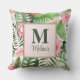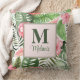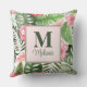 Tropische roze bloemen en Monstera Monogram Kussen