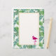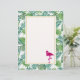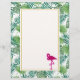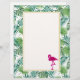 Letterkop met een groen tropisch blad en een wit lijst met een gouden rand die over de bovenkant is gelaagd. Een roze flamingo illustratie voegt een beetje charme toe.