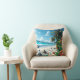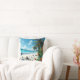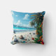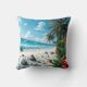 Een tropisch werpkussen met een prachtig strandtafereel met palmbomen, tropenbloemen, blauw water en aardewerk dat tot aan de kust aanspoelt. Voeg een mooie touch toe aan uw strandhuis met dit prachtige strandkussen.