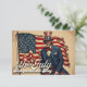 Een verweerde maar trotse figuur staat voor een gehavende Amerikaanse vlag - zijn aanwezigheid is een eerbetoon aan de blijvende geest van vrijheid, veerkracht en de Amerikaanse droom. Dit afbeelding legt de essentie van Onafhankelijkheidsdag vast met poëtische waardigheid en patriottische kracht.