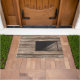 3 dimensions trou anamorphique dans la porte de piège à plancher dans une conception de tapis. La porte de piège à texture de bois coloré est tapis de bain ouvert. Super idée de couleurs pour tout décor maison pour cuisine ou salle de bain. Tapis d'art unique avec un trou dans le plancher planches de bois design.