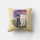 Een gooiende kussen met een grappige cartoon over Trump en zijn arrestatie. Origineel kunstwerk door de Cartoons van OB.
