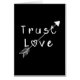Dit 'Trust Love'-wenskaart herinnert ons eraan dat liefde ons altijd in de goede richting wijst. Deze witte tekst op zwarte achtergrondversie doet denken aan bordtekeningen. Kunst en design door Victoria Lynn Hall.