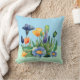 Deze vrolijke bloemstuk zal elk interieur opfleuren. Het ontwerp heeft een zachte blauwe en groene achtergrond met een grillige bloementuin. Deze kleurrijke tuin bevat oranje en blauwe bloemen samen met heldere groene exotische bladeren.