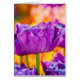 Violet coloré, violet, tulipes roses sur un lit à fleurs. Presque toutes les couleurs arc-en-ciel présentes. Scène florale lumineuse et positive. Photographie macro.