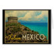De Maya-ruïnes van Tulum, Mexico, op het schiereiland Yucatan worden versterkt door het aanlokkelijke groen-blauw water van het Caribische zee in dit vintage-afbeelding.