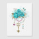 Antieke gouden sleutel met trendy turquoise rozen versierd met bladeren van witgoud en roze en blauwe kralen. Modekleur. Turquoise rozen. Witgoud. Blauwe tiffany.