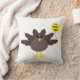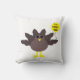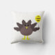 Ce coussin génial présente un dessin amusant d'une dinde aux grands yeux noirs, un petit bec jaune et des plumes de queue. Les pieds sont orientés dans des directions opposées, ce qui rend la dinde maladroite. La dinde tient un ballon jaune avec un message à l’intérieur qui dit "c’est l’heure de la dinde". C'est un design de fête de grâce amusant.