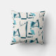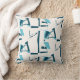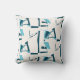 Turquoise Aqua Twirling Lines Print on Off-White Kussen