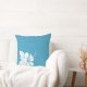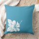 Een wit silhouet van een hibiscusbloem is het hoogtepunt op dit helderblauw gekleurde kussen.