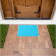 doormat met ruitvormig chevron-patroon in tinten blauw, met inbegrip van aqua en turquoise die op een gelaagd of deken-patroon lijken.