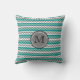 Turquoise en Gray Chevron Zigzag Monogram Kussen
