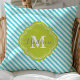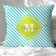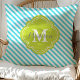 Trendy turquoise en groen gestreepte monogram gestickte decoratieve kussenhoeve. Met een leuk, net vierbladig monogramframe. Klik op "personaliseer het" om het te personaliseren met je eigen naam en initialen.