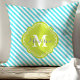 Turquoise en groen gestreepte monogram kussen
