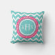 Turquoise en roze Chevron Monogram Kussen