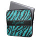 Turquoise Glitter Zebra Print Monogram Laptop Sleeve