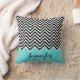 Turquoise munt met zwart-wit Chevron Custom Kussen