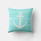 Turquoise blauw nautisch bootanker buitenshuis werpt kussens met een houten achtergrond. Een cadeau voor de versiering van het strand voor thuisgebruik of zeilboot. Houten panelen met verweven marineschepen. zeebodem-/strandthemadecor. Faded look-design voor achtertuin, terras of terras. Buitendecoraties voor sofa of stoel. Ook aardig voor de bruiloft van de zomerbestemming.
