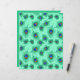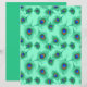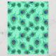 Papier in een patroon van pauwenveren, in turkoois/pauwengroen, met roest en kobaltblauw oog, op een pastel aqua achtergrond