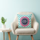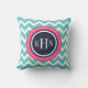 Turquoise Roze en Navy Chevron Monogram Kussen