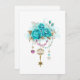 Antiek gouden sleutel met trendy turquoise-rozen versierd met bladeren van wit goud, roze en blauwe kralen. Fashionable kleur. Turquoise rozen. Wit goud. Blauwe tang.