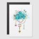 Antiek gouden sleutel met trendy turquoise-rozen versierd met bladeren van wit goud, roze en blauwe kralen. Fashionable kleur. Turquoise rozen. Wit goud. Blauwe tang.