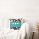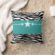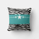 Coussin moderne et tendance Sassy Star Zebra avec un arrière - plan design en papier zèbre noir et blanc et une bordure turquoise audacieuse ornée d'un motif étoilé amusant. Ce design girly peut être customisé avec le texte personnalisé de votre choix. Cliquez sur "Customiser" pour trouver d'autres options de personnalisation.