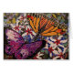 Twee prachtig gekleurde vlinders rusten samen onder exotische bloemen op dit stuk van een soort kunstwerk van Aleta.