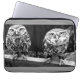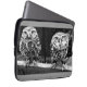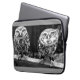 Beschermend sleeve voor de laptop met een zwart-wit ontwerp met twee uilen. Grijze achtergrond. Verkrijgbaar in afmetingen voor 10-, 13- en 15-inch notitieboeken.