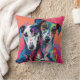 Afbeelding een vierkant kussen versierd met de koninklijke portretten van twee prachtige zweepslagen, geplaatst tegen een fascinerende achtergrond van sinaasappel en roze tinten. Het portret van elke zweep is een meesterwerk op zich, het vastleggen van de essentie van hun genade en schoonheid in ingewikkelde details. Met waardige uitdrukkingen en doordringende blikken, deze whippets bevelen aandacht en bewondering. Hun nobele eigenschappen worden geaccentueerd door de levendige kleuren die hen omringen, waardoor een opvallend visueel contrast ontstaat dat het oog trekt. De oranje en roze achtergrond voegt een vleugje warmte en levendigheid toe aan het kussen, waardoor de aantrekkingskracht van de zweepportretten wordt vergroot. De naadloze mix van kleuren creëer is een harmonieuze achtergrond die de elegantie van de hoekige onderwerpen aanvult. Gemaakt van pluche, luxe stof, biedt het kussen zowel visuele pracht als tactiel comfort. Als je met je vingers over het gladde oppervlak loopt, voel je de ingewikkelde textuur van de portretten van de zweepslagen, elke slag is een bewijs van de vaardigheid en het vakmanschap van de kunstenaar. Of het nu wordt weergegeven op een bank, bed of fauteuil, dit vierkante kussen dient als een statement stuk dat elke ruimte verheft met zijn tijdloze schoonheid en verfijning. Het is meer dan een kussen; het is een eerbetoon aan de majestueuze allure van zweepslagen en de blijvende band tussen mensen en hun hoekmetgezellen.