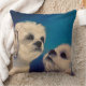 Twee witte Malteese schattige puppies schilderen kunstwerk van Zina Stromberg op Kussens.