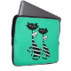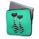 Twee zwarte en witte Silhouette katten Groen Laptop Sleeve