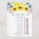 Landelijke bruiloftsspelkaart die past bij onze 'Flowerfields' bruiloftcollectie en heeft een bovenrand van gele waterverf zonnebloemen en kleine marineblauwe knoppen. Dubbelzijdige kaart geeft je twee spellen in één! Voorzijde heeft 'Hij zei, Zij zei' en achterzijde heeft een bruiloftsthema woordzoekopgave. Personaliseer met de naam van de bruid en de datum van het feest. Voor extra aanpassingen, neem gerust contact met me op!