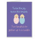 "Twee keer de vreugde, twee keer de moeite. Twee handvatten om zich in een knuffel te verzamelen." Schattige kaart voor nieuwe ouders van tweelingen. Lege binnenkant om met uw eigen bericht aan te passen. Klik op Aanpassen en 'Bewerken' en 'afbeelding uitsnijden' voor twee tweelingen van meisjes/twee jongens.