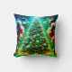 This colorful Christmas throw pillow has two different Christmas tree scenes, one for each side.