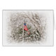 De kleuren van de Vlag van Verenigde Staten kunnen door de sneeuwboomtakken worden gezien.