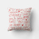 Dit kussen bevat een speels patroon van met de hand geschreven woorden zoals "LOVE", "ADORE" en "FOREVER", gemengd met hartvormen, allemaal in rode inkt op een witte achtergrond. De overlappende en willekeurige opstelling van deze elementen creëer is een compact en visueel aantrekkelijk ontwerp. Dit patroon is perfect voor het overbrengen van thema's van liefde en genegenheid