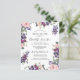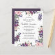 Rustieke boho-design met rozeroze rozen en paarse veldbloemen creëren een kader rond uw bruidsfeestdetails. De naam van de aanstaande bruid is geschreven in een trendy script. De achterkant van de uitnodiging is diep paars.