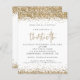 Uitnodiging voor dertigste feestje met goud glitters. Een voordeligere alternatief van 4,5” x 5,6”. Beschikbaar op HALFGLANS 110 lb KARTON of op MATTE AFWERKING 80 lb DUNNER PAPIER. Enveloppen zijn een optionele extra. Elegante gouden nepgoudglitterranden zijn aan de boven- en onderkant en ook aan de achterkant. Dertigste is geschreven in een modern handschrift. Personaliseer de rest van de tekst gemakkelijk naar uw eigen wens.