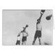 Groep jonge mannen die buitenshuis met gewichten vissen (B&W) | FPG | AssetID: AB06446