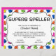 Vier de spellingprestaties van je studenten met de "Eind of Year Superb Speller Student Recognition Award". Dit prachtig ontworpen certificaat is perfect voor het erkennen van hard werken en excellentie in spelling. Personaliseer het met de naam en datum van de student om een memorabele aandenken te creëer. Ideaal voor docenten en opvoeders die hun fantastische spellers willen inspireren en belonen!