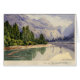 Het schilderen van de waterverf van de vallei van Yosemite met bomen die een rivier met bergen op de achtergrond bedekken in wat nu het nationale park van Yosemite is.
