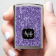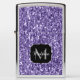 Personaliseer uw initiaal en naam - een lichte aansteker voor dames. Prachtige, dunne, ultraviolette Paarse faux-glitter-sparkles. Foto van violet is geen echte glitters!