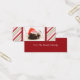 Carte de visite maigre avec une adorable photo d'un chiot carlin qui dort en portant un chapeau santa. Joyeux Noël est écrit sur la bande de son casquette, dans une police manuscrite branchée. Les lumières de Noël ajoutent une touche de vacances saisonnière. L'arrière - plan est un motif à rayures sucre de canne festif en rouge blanc et vert. Personnalisez avec votre propre texte à l'arrière.