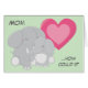 Une mère éléphante met son bébé dans un bouchon sur le devant de cette mignonne carte de fête des mères. Derrière eux se trouve un double coeur rose vif. Le texte dit "Maman...comment pourrais-je ?" Le texte à l'intérieur complète le sentiment, avec un coeur rose supplémentaire en bas. Tout le texte, à l'intérieur et à l'extérieur, peut être facilement changé à tout ce que vous voulez, ce qui rend cette carte adaptée à l'anniversaire de maman, aussi. Ou faites-le pour grand-mère ! *Crédit de design pour Joli Design Graphique.