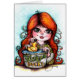 Une grande fille d'une chevelure rouge d'oeil et son mignon chanceux !